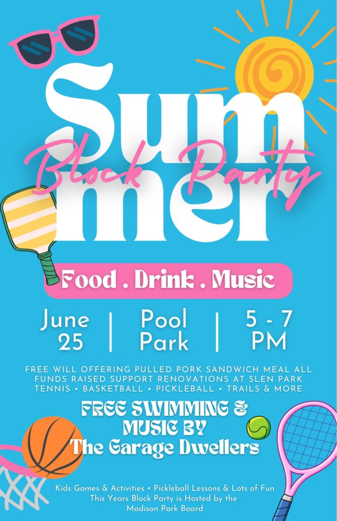 Join Madison for their annual block party! There will be swimming, food, music, and more!